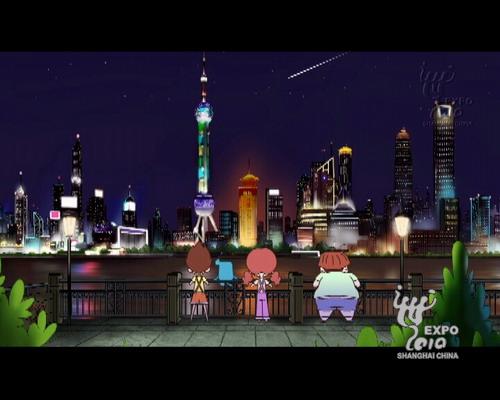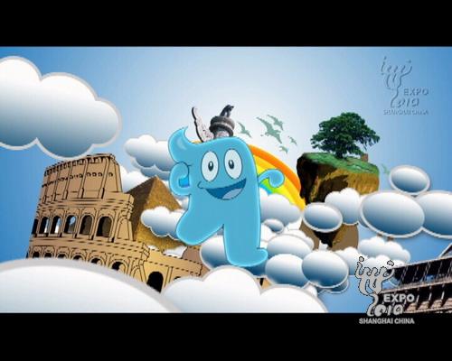 動畫片場景中巧妙地植入了上海世博園區(qū)的主要場館及中國、上海的主要地標,使觀眾能在動畫片中發(fā)現(xiàn)日常生活中熟悉的場所和景觀,從而增添親切感。