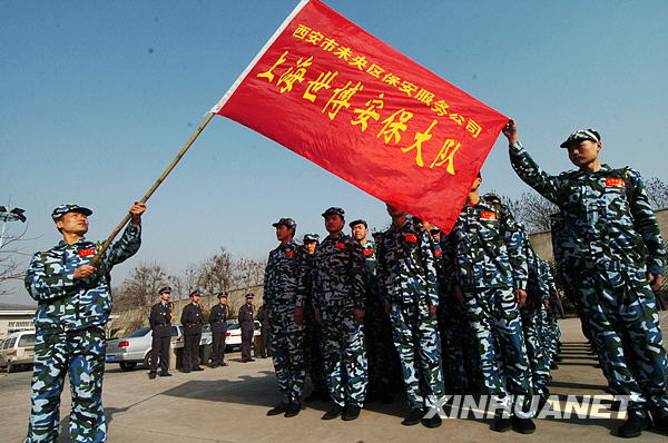 3月10日,服務上海世博會的56名西安保安準備出發(fā)前往上海。