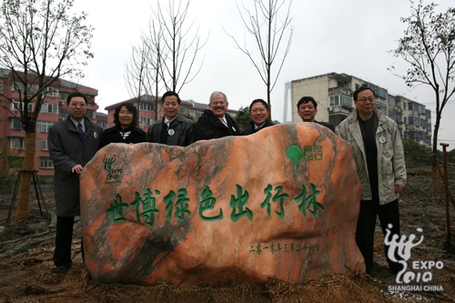 中國(guó)環(huán)境與發(fā)展國(guó)際合作委員會(huì)秘書長(zhǎng)、原國(guó)家環(huán)保總局副局長(zhǎng)祝光耀出席儀式,并親手種下第一株樹(shù)苗。來(lái)自上海市環(huán)保局、上海世博局、上海市綠委辦公室、上海市徐匯區(qū)政府、美國(guó)環(huán)保協(xié)會(huì)、中國(guó)民促會(huì)綠色出行基金以及77家行業(yè)協(xié)會(huì)和企業(yè)的代表參加了世博綠色出行林的揭牌儀式和植樹(shù)活動(dòng)。