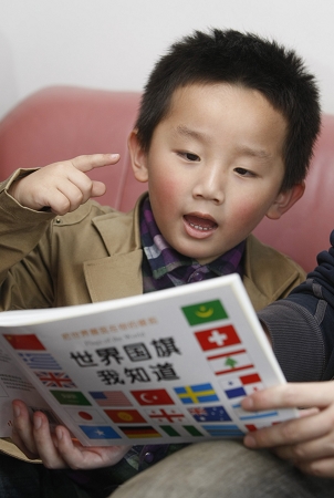 東方網(wǎng)5月13日消息:據(jù)《東方早報(bào)》報(bào)道,家住浦東的陳思捷小朋友今年3歲,是個(gè)活潑可愛(ài)的小男孩。和同齡人不同的是,他有一手“看國(guó)旗識(shí)國(guó)家”的絕活。據(jù)他的家人介紹,小思捷能夠辨認(rèn)近200個(gè)國(guó)家的國(guó)旗,還能說(shuō)出國(guó)旗代表的國(guó)家及其首都。小思捷告訴記者:“我要去世博園里認(rèn)國(guó)旗。”