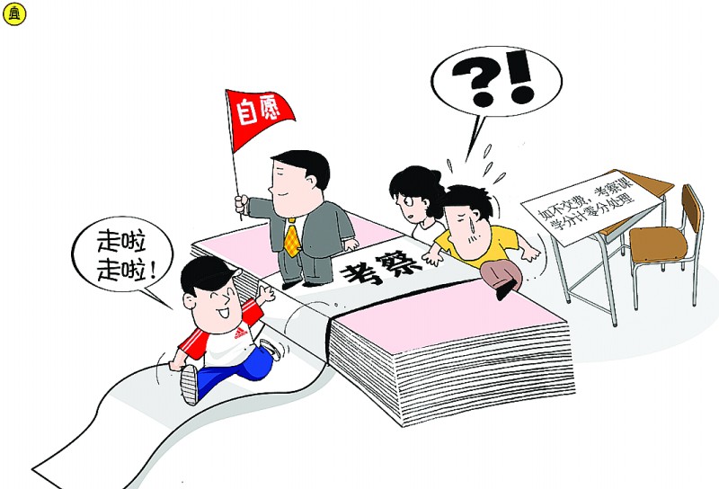 對學(xué)生來說,考察課可上,世博會也不是不想去,可“被世博”就說不過去了。(李繼彥)