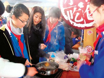 記者昨天在黃渡中學(xué)藝術(shù)節(jié)上看到,學(xué)生們自己采寫編印的世博小報(bào),內(nèi)容豐富、版面生動活潑。最搶人眼球的是“世博菜”烹飪大賽。只見學(xué)生和家長們組成幾十對“大菜師傅”圍著長桌一字?jǐn)[開,他們拿著自己帶來的菜,有的煎炒、有的蒸煮、有的做成湯料,各自使出了全部看家本領(lǐng)。一位陸姓同學(xué)的爸爸說:“世博會離我們越來越近了,我們?nèi)胰艘惨倬毑倬殻瑢脮r(shí)外國朋友到上海來,我們要燒出好吃的嘉定地方菜讓他們嘗嘗……”