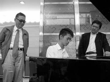 這邊波波跟偶像交流正歡,那邊李戡也跟自己的偶像、著名指揮家余隆聊得起勁,并大膽“班門弄斧”秀了一把鋼琴技藝,彈奏一曲 《黃河》選段,并接受了大師的現(xiàn)場指點(diǎn)。當(dāng)?shù)弥铌痪们皠偙槐贝箐浫『螅嗦『苁切老玻硎鞠窭铌@樣既有文采又有藝術(shù)情趣,絕對(duì)是現(xiàn)代年輕人的榜樣,并希望今后能有機(jī)會(huì)在北京和李戡多聊聊音樂,甚至希望找時(shí)間和交響樂隊(duì)合作一下,讓李戡能走上舞臺(tái),完成他演奏《黃河》的夢(mèng)想。
