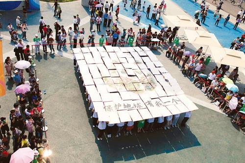 世界自然基金會榮譽日志愿者現場拼出大熊貓