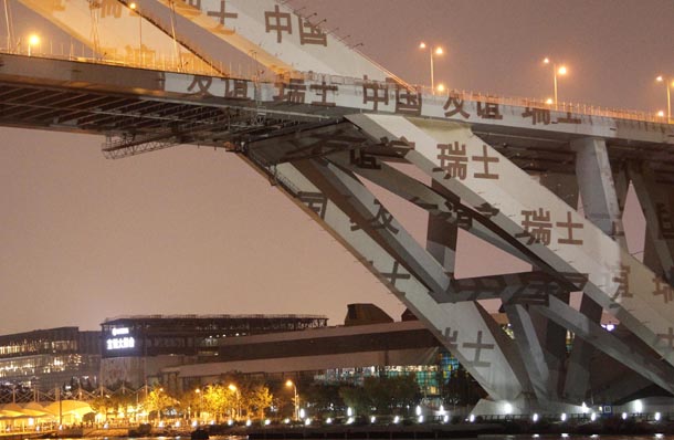 為慶祝9月14日中瑞兩國建交60周年紀念日,上海世博會瑞士館及瑞士政府于9月13日至15日在世博園區水域呈現了一場“瑞士霓光幻彩之夜”大型燈光藝術秀。享譽世界的瑞士傳奇燈光藝術大師格里·霍夫施泰特爾來滬“點亮”盧浦大橋和外灘萬國建筑群等地標性建筑。