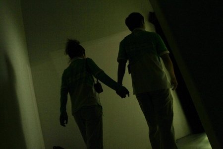 觀眾在謝丹玲的指引下,在黑暗的環境中體會盲人如何生活。