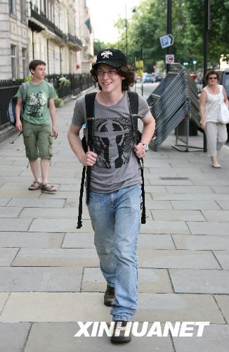 7月27日,在倫敦,英國青年艾薩克·劉易斯走向中國駐英大使館。當天,劉易斯結束了為中國四川地震災區進行的240英里(約386公里)的徒步募捐活動,抵達中國駐英大使館。他6月7日從北威爾士的家鄉出發,目標是募集3000英鎊(約合6000美元)善款,目前已募集到2500英鎊。 新華社記者謝秀棟攝