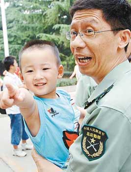 今年5月,3歲的四川北川縣男孩郎錚被從廢墟中營救出時,在擔架上艱難地舉起右手,向營救他的解放軍官兵敬禮,這一瞬間感動了無數中國人。
