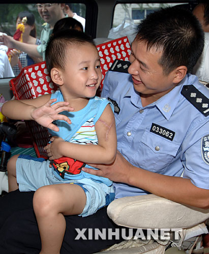 郞錚的父親郎洪東是北川縣一名公安民警,警齡已有13年。郎洪東說,原來的家在地震中毀掉了,他在綿陽租了一套房子。郞錚出院后將回到綿陽,回歸正常的家庭生活。