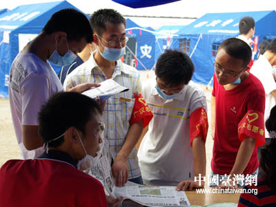 20日下午,臺灣紅十字組織醫療隊帶約3噸醫療用品等物資前往廣漢市,21日在高坪鎮,23日在體育場救災點設立醫療救護站,展開救護服務。救護站設有中、西醫。從21日至24日共計診治476名。對數十名老弱災民進行體檢,做了一臺氣胸手術、兩個骨折手術。和一個頭皮縫合小手術。內、外科,兒科,針灸,急處方發藥點。巴蜀音像制作中心 蘭志泉 攝
