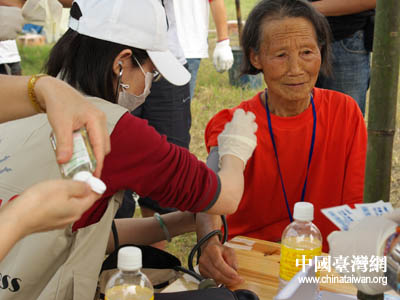 20日下午,臺(tái)灣紅十字組織醫(yī)療隊(duì)帶約3噸醫(yī)療用品等物資前往廣漢市,21日在高坪鎮(zhèn),23日在體育場(chǎng)救災(zāi)點(diǎn)設(shè)立醫(yī)療救護(hù)站,展開(kāi)救護(hù)服務(wù)。救護(hù)站設(shè)有中、西醫(yī)。從21日至24日共計(jì)診治476名。對(duì)數(shù)十名老弱災(zāi)民進(jìn)行體檢,做了一臺(tái)氣胸手術(shù)、兩個(gè)骨折手術(shù)。和一個(gè)頭皮縫合小手術(shù)。內(nèi)、外科,兒科,針灸,急處方發(fā)藥點(diǎn)。巴蜀音像制作中心 蘭志泉 攝