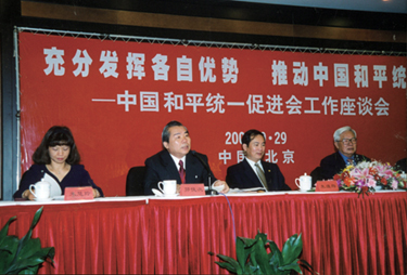 2002年9月29日,來自世界40多個國家和地區的70多位中國和平統一促進會會長和代表出席了在北京召開的“充分發揮各自優勢 推動中國和平統一”中國和平統一促進會工作座談會。全國政協副主席、中國和平統一促進會會長羅豪才等出席了座談會。
