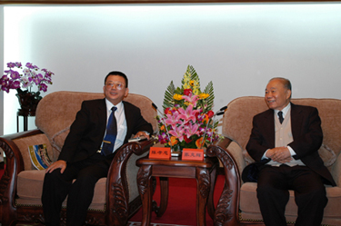 圖1:全國(guó)政協(xié)副主席、中國(guó)和平統(tǒng)一促進(jìn)會(huì)副會(huì)長(zhǎng)張克輝(右)會(huì)見(jiàn)訪問(wèn)團(tuán)成員(左為訪問(wèn)團(tuán)團(tuán)長(zhǎng)陳孝忠)。