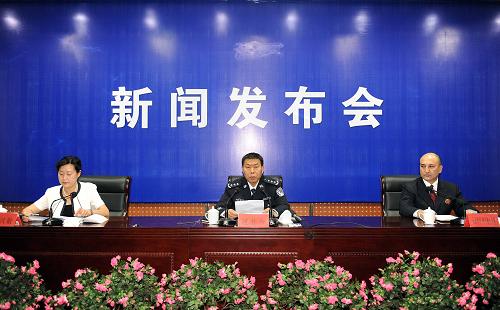 8月4日,新疆維吾爾自治區(qū)公安廳副廳長、烏魯木齊市公安局局長陳壯為(中)在新聞發(fā)布會上通報“7.5”打砸搶燒事件偵查進展情況。截至8月4日,烏魯木齊公安機關已刑事拘留“7·5”打砸搶燒事件犯罪嫌疑人718名,目前案件的偵破工作仍在緊張進行中。 新華社記者 沙達提 攝