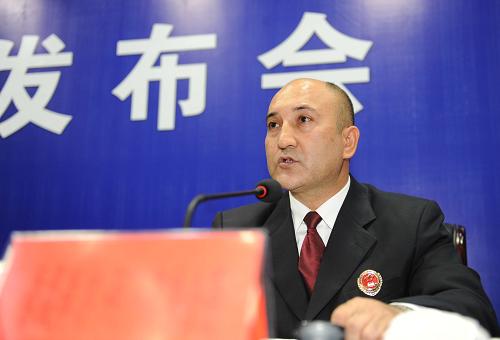 8月4日,烏魯木齊市人民檢察院檢察長吾提庫爾·阿不都熱合曼在新聞發(fā)布會上通報情況。當日,吾提庫爾·阿不都熱合曼在烏魯木齊舉行的新聞發(fā)布會上宣布,截至8月3日,經(jīng)檢察機關嚴格依法審核、查證,烏魯木齊“7·5”事件首批83名犯罪嫌疑人被批準逮捕。 新華社記者 沙達提 攝