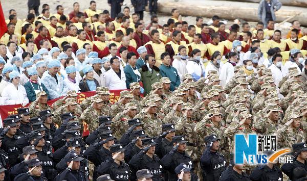 青海玉樹沉痛悼念地震遇難同胞