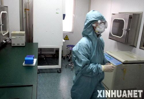 5月4日,在合肥市疾病預(yù)防控制中心,全國(guó)流感網(wǎng)絡(luò)實(shí)驗(yàn)室研究人員在進(jìn)行甲型H1N1型流感病毒快速診斷和檢測(cè)試劑預(yù)實(shí)驗(yàn)。 當(dāng)日,經(jīng)過(guò)中國(guó)疾病預(yù)防控制中心和中國(guó)醫(yī)學(xué)科學(xué)院科學(xué)家研制的甲型H1N1型流感病毒快速診斷和檢測(cè)試劑運(yùn)抵安徽合肥,并于當(dāng)日下午在合肥市疾病預(yù)防控制中心的全國(guó)流感網(wǎng)絡(luò)實(shí)驗(yàn)室內(nèi)進(jìn)行預(yù)實(shí)驗(yàn)。 新華社發(fā)(郭晨 攝)
