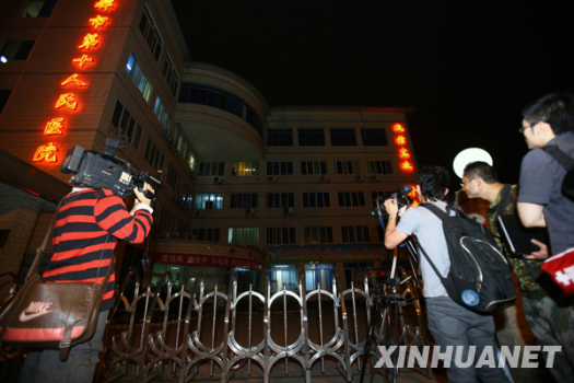 5月10日,媒體記者在成都市傳染病醫(yī)院外采訪。當(dāng)日下午,衛(wèi)生部接到四川省衛(wèi)生廳報(bào)告,四川省人民醫(yī)院發(fā)現(xiàn)1例發(fā)熱病例,根據(jù)臨床表現(xiàn)和實(shí)驗(yàn)室檢驗(yàn)結(jié)果,初步診斷為甲型H1N1流感疑似病例。目前,患者已轉(zhuǎn)送成都市傳染病醫(yī)院隔離治療,其就診過(guò)程中的密切接觸者也已采取醫(yī)學(xué)觀察措施。新華社記者陳建力攝