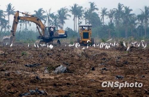 8月23日,大陸3名技術人員抵達臺灣高雄縣災民安置活動板房建設工地,將為活動板房搭建工作提供技術支持,并對現場施工人員進行培訓,首批100戶活動板房的興建工作相信能夠在今后3周內完成。圖為工程車加緊進行整地工作。中新社發 劉舒凌 攝 |