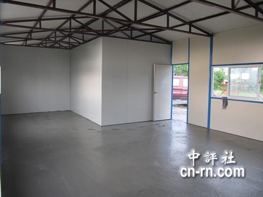 活動板房昨天下午進行內部整平工作。來源:中評網