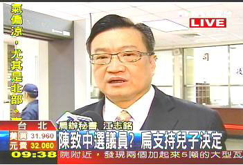 盡管陳致中否認,但陳水扁辦公室秘書江志銘今日上午卻保留的說,陳致中對于要不要參選,還沒做出最后決定。但他強調,陳水扁表示,“如果陳致中有需要,希望民進黨各界給他多一點指點,畢竟我們在地方長期經營。”等于支持陳致中投入選戰。今日上午庭訊原本也傳喚吳淑珍,但因天氣關系影響,吳淑珍仍請假未到庭,至于吳淑珍是否支持陳致中投入選戰,江志銘則說,吳淑珍站在兒子的立場,“也是贊同”。(劉海偉)