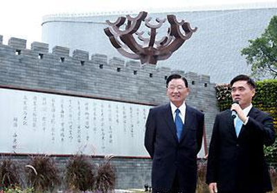 海基會董事長江丙坤一行人在臺北市長郝龍斌陪同下參訪花博的上海庭園及西安庭園。 圖片來源:臺灣“今日新聞網(wǎng)”