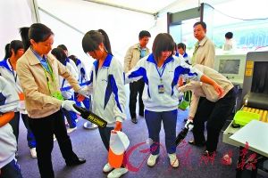 昨日上午9時(shí)40分左右,記者在東莞體育館門口看到了數(shù)百名學(xué)生排成的長(zhǎng)隊(duì)。據(jù)帶隊(duì)老師介紹,這些身著校服的學(xué)生是今早觀眾入場(chǎng)演練的“主角”——模擬觀眾。據(jù)介紹,這些模擬觀眾都是來(lái)自南城職業(yè)中學(xué)的學(xué)生。“大約有500人左右。”南城職中帶隊(duì)負(fù)責(zé)的楊老師告訴記者。