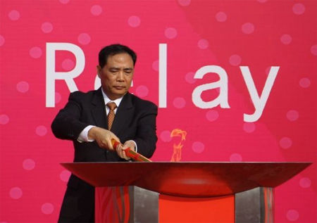 9點40分左右,火炬護衛隊護送火種燈和火炬上臺,廣州市檢察院黨組書記、檢察長王福成上臺點燃火種盆;9點42分左右,廣州市委常委、廣州經濟技術開發區管委會主任、黨工委書記、蘿崗區委書記凌偉憲上臺點燃火炬交給第一棒火炬手中國殘聯愛心大使、廣州亞殘運會愛心大使南欣并宣布火炬傳遞活動開始;9點45分左右第一棒火炬手正式起跑。