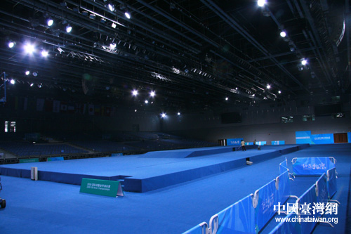 中國(guó)臺(tái)灣網(wǎng)5月15日北京消息 15日,本網(wǎng)記者隨“全國(guó)網(wǎng)站看奧運(yùn)”活動(dòng)走進(jìn)國(guó)際會(huì)議中心擊劍館。不同于采訪團(tuán)到訪的前幾個(gè)場(chǎng)館,擊劍館作為永久性建筑中的臨時(shí)性場(chǎng)館,通過(guò)巧妙的設(shè)計(jì),實(shí)現(xiàn)了在舉辦奧運(yùn)會(huì)擊劍、現(xiàn)代五項(xiàng)以及殘奧會(huì)輪椅擊劍和硬地滾球比賽,與“變身”大型會(huì)議展覽中心之間的游刃轉(zhuǎn)換。