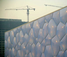 外層膜結構完成 水立方“外衣”汽車壓不壞