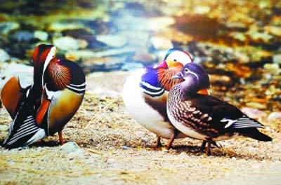 中新浙江網1月6日電 昨天,一對對臺灣的鴛鴦“飛”進了西湖邊的恒廬美術館,與西湖的鴛鴦同在一個屋檐下。展覽的名字叫“海峽兩岸鴛鴦奇緣”攝影攝像展。兩位主角一個在杭州西湖,一個在臺灣武陵。他們因為同樣愛好鴛鴦,而在同一年開始關注并拍攝野生鴛鴦,這一拍就是六年。