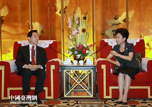 11日,“情系巴蜀——兩岸文化聯(lián)誼行”活動(dòng)在成都開(kāi)幕。圖為四川省副省長(zhǎng)黃彥蓉會(huì)見(jiàn)前海基會(huì)副董事長(zhǎng)焦仁和。(中國(guó)臺(tái)灣網(wǎng) 趙輝 攝)