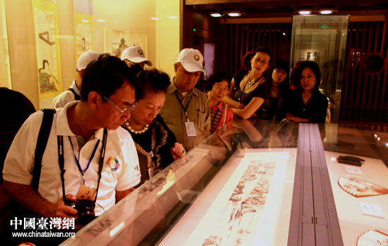11日,參加“情系巴蜀 兩岸文化聯誼行”活動的兩岸嘉賓在四川省博物院欣賞張大千畫作。(中國臺灣網 張瑞宸 攝)
