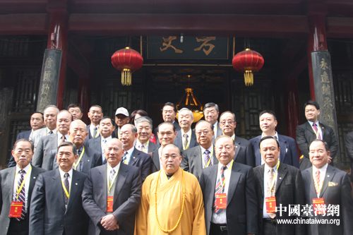 臺灣退役將領參訪團與少林寺方丈釋永信法師合影(中國臺灣網 趙輝 攝)