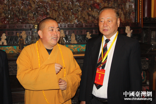 臺灣退役將領參訪團團長王文燮上將與少林寺方丈釋永信法師親切交談(中國臺灣網 趙輝 攝)