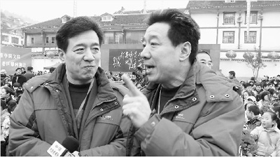 在遵義,雙胞胎藝術家劉全和、劉全利表演后接受采訪