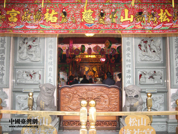 松山慈佑宮大殿門口,里面經(jīng)常人潮洶涌。