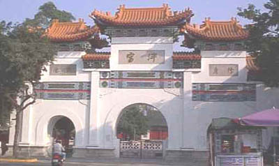 臺北孔廟又稱“文廟”,始建于明末永歷十九年(清康熙四年,1665年),為鄭成功參軍陳永華倡建。后遭遇日本侵略者毀滅性的破壞。1925年,臺灣人民決定重建孔廟,歷經艱辛,終于在1939年竣工,又經修繕擴充,孔廟已恢復昔日巍峨崇宏的面貌,被譽為“正統南中國式的孔廟”。因此,臺北孔廟又是臺灣人民反抗外來文化侵略,堅持民族文化傳統的見證。每年9月28日在此舉行祭孔大典。祭禮由臺北市政府主持,儀禮悉依古制,參祭者要穿古服,獻犧牲,舞八佾,奏大雅之樂;整個祭奠肅穆、莊嚴、隆重。