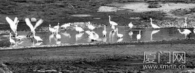 昨天傍晚,記者和廈門觀鳥會的資深“鳥人““野鳥”,趕到湖邊水庫,果然見到白鷺翔集的壯觀場面。“野鳥”對這里進(jìn)行過長期跟蹤觀測,他說,湖邊水庫以前偶爾有白鷺出現(xiàn),但從來沒見過這么大的規(guī)模。
