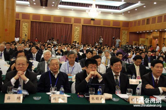第五屆兩岸經(jīng)貿(mào)文化論壇專題報告7月11日上午在長沙舉行,圖為北京大學(xué)中文系教授張頤武(前排左三)、中國藝術(shù)研究院文化研究所所長劉夢溪(前排左二)等出席。(中國臺灣網(wǎng) 鐘寶華 攝)