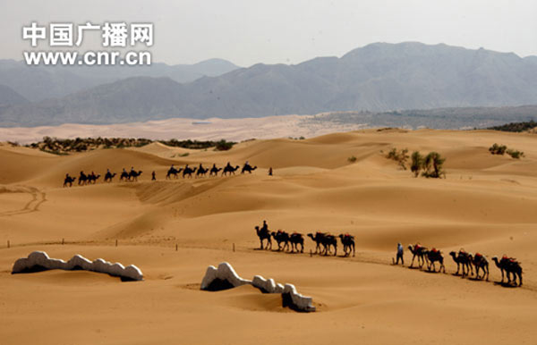 寧夏中衛(wèi)市沙坡頭景區(qū),大漠的吸引力。