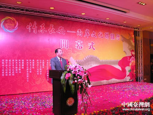 出席開幕式的文化部副部長、中華文化聯誼會顧問王文章在開幕式致詞時說:長安勝地,華夏古邦,歷史悠遠,文化榮昌;大家匯聚一起,高朋滿座,暢敘情懷,惠風和暢,不亦樂乎!在我們腳下的這片黃土地,見證了秦、漢、隋、唐等十三個王朝都城的的興衰與滄桑,華夏各種文明在這里相互融合,發揚光大,我們先人那種敢為天下先的開拓精神與海納百川的包容氣概,激勵著海峽兩岸的炎黃子孫努力奮斗,相互借鑒,合作發展,共同傳承和弘揚我們共同的文明。