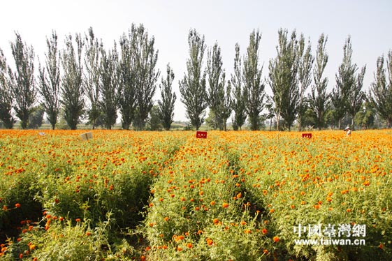 這片金燦燦色素菊的花海不但令人賞心悅目,而且還給當(dāng)?shù)氐霓r(nóng)民能帶來(lái)一筆較可觀的經(jīng)濟(jì)收入。(中國(guó)臺(tái)灣網(wǎng)記者 李婷婷)