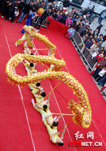 紅網(wǎng)長(zhǎng)沙2月9日(記者 喻向陽(yáng) 通訊員 黃潔)星城長(zhǎng)沙的元宵節(jié)氣氛越來(lái)越濃厚了,今天上午11時(shí)許,岳麓山東大門(mén)人山人海,大鼓敲起來(lái),龍獅躍起來(lái)。岳麓山邀請(qǐng)的中國(guó)首屆大學(xué)生龍獅錦標(biāo)賽冠軍--中南大學(xué)龍獅隊(duì),在紅地毯上進(jìn)行現(xiàn)代競(jìng)技龍獅表演。