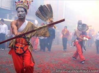 鹽水蜂炮白天的陣頭也精采。圖片來源:臺灣“今日新聞”