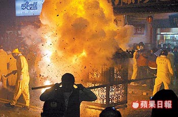 夜弄土地公。臺北市內(nèi)湖地區(qū)元宵節(jié)民俗活動夜弄土地公昨晚登場,有百年歷史的枧頭店福德祠土地公盛大出巡,商家和民眾將鞭炮圈在神轎上狂炸土地公,深信炸愈多、財運愈旺。來源:臺灣《蘋果日報》
