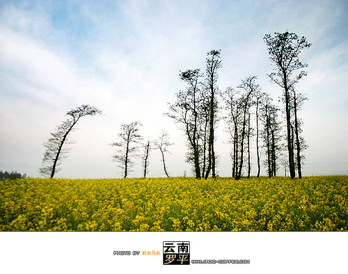 攝影:羅平地處溫濕地帶,陰雨天較多,這給拍攝帶來一定難度。因為拍攝油菜花一般需要較明亮的光線,這樣才能表現(xiàn)出它的鮮亮和艷麗。切勿逆光拍攝,尤其是當(dāng)你面對大場景時,因為這樣拍出的油菜花會顯得灰暗,毫無生機(jī)。一般采用順光或側(cè)光,拍出的照片亮麗明快,層次分明,色彩飽和度高。