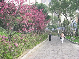 中正紀念堂在“正名”的風波中屢屢被點名,但中正紀念堂里五、六百株大小櫻花不理會政治口水,正漸次開展,不想大老遠開車上山賞花的民眾,到此就可以看到櫻花開的美景。